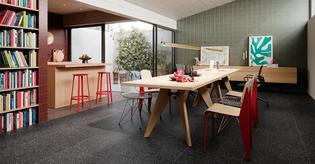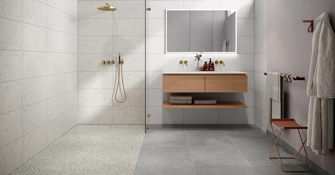 A modular design system of floor and wall tiles that allow you wide range of flexibility in design. With three colors each in a cement and a terrazzo look Trio has an elevated style that is grounded in the classics. These are paired with four colors of wall tile the bring some life into any space.